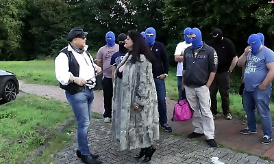 Nasty brunette fattie with big jugs gets banged rigid by a stranger in a field