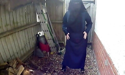 Niqab Tramp! Fette Moslemnutte strippt im Hinterhof!