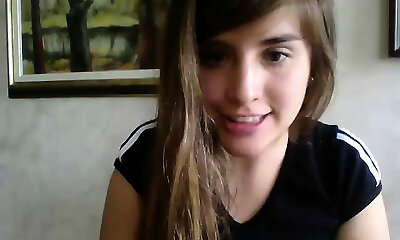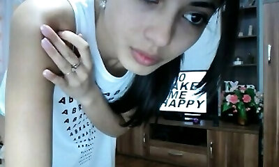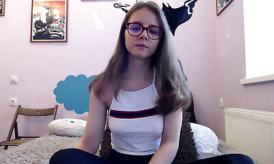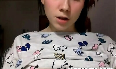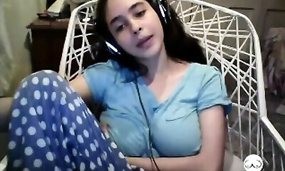 19 year old busty webcam girl with innocent face caresses her big natural ti
