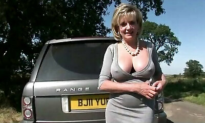 Mature fatty with big Bra-stuffers spreads her legs young man