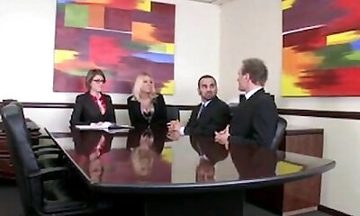 Four Super-steamy big-titty office sluts fuck boss' big-dick in office